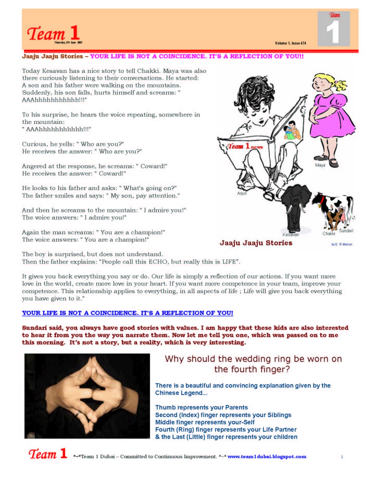 Again another change from Team 1 news. I used to address you all, Dear friends and Dear Patrons. I realised the big mistake in it yesterday while I was talking to a CEO friend of mine, just before he was leaving for a crucial staff meeting. With conflicts in views and thoughts around it was something like a mediatory meeting to console and adjoin two warring factions within the establishment. He told me on his way – I am not going there as a CEO. I am going there as a Team Leader and let me see how I can change the situation. And he did. It was another eye opener to me. In a successful team, only members exist. Each one has a definite and distinct role and it is up to them to play it in the best way they can with a common vision. Just like that of a well tuned musical orchestra – the sound coming out from it should be melodious and memorable forever.