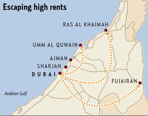 Real estate brokers say the main alternatives to Dubai are still Ajman, Sharjah and Abu Dhabi, where residents can enjoy lower rents and still be within touching distance of Dubai’s job scene and lifestyle options.