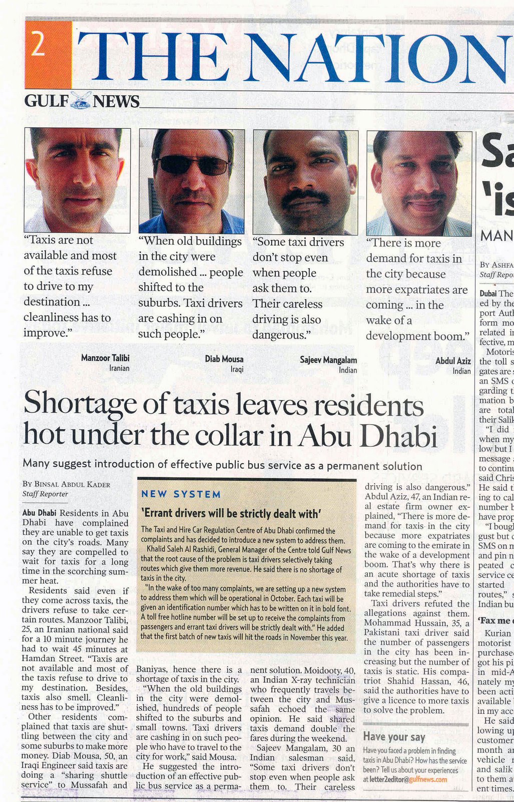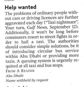 Appreciate to see more suggestions and solutions to resolve the shortage of taxis in Abu Dhabi which is making the life of people to go to work and come back home. We need solutions and we have to give solutions to the administrative authorities rather than filling them with problems.