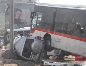 The RTA bus hit two vehicles when it swerved to the left side of the road then hit a bus which was dropping passengers off after it veered off to the right before it landed on a four-wheel drive killing a Pakistani passenger,” Bu Farrousha told Gulf News.