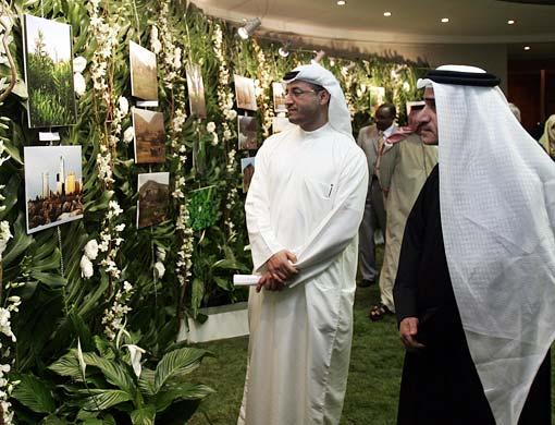 Dr Sulaiman Al Jassem (right), Vice-President of Zayed University, and Majid Al Mansoori, Secretary General of Environment Agency-Abu Dhabi, takes a tour after inaugurating the exhibition in Abu Dhabi.