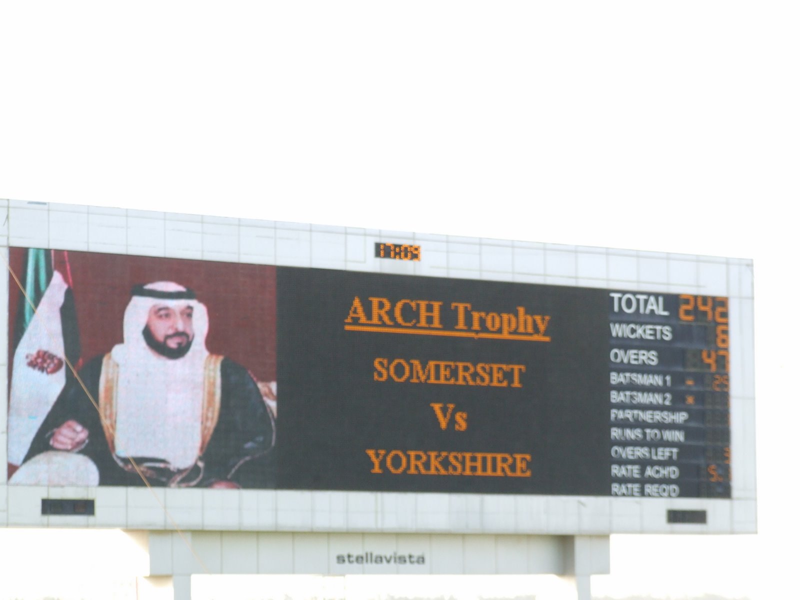 Somerset and Yorkshire Cricket teams are here in Abu Dhabi now, playing for the ARCH Trophy. Here are some action scenes from one section of the match played yesterday.