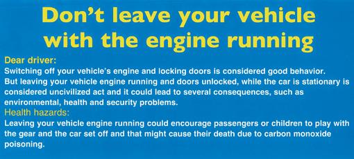 He said in the case of an emergency or the dire need to leave the car engine on such as, having sleeping children inside, there must be an adult in the car and he or she must have a suitable communication method to reach the motorist in case of any emergency.