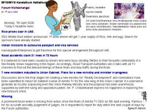 * Her song was broadcast by Asianet Radio 94.7 fm during the ‘Voice of the Year’ programme