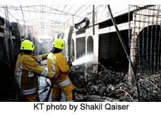 The police and Civil Defence officials reached the site immediately and struggled for hours to contain the fire. They managed to do so before it could spread to shops and the buildings in the densely populated area.