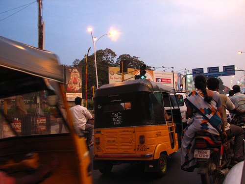 Auto Rickshaws are the main villains of the road. This triangular vehicle carries iron rods, gas cylinders or passengers three times its weight and dimension, at an unspecified fare. After careful geometric calculations, children are folded and packed into these auto rickshaws until some children in the periphery are not in contact with the vehicle at all. Then their school bags are pushed into the microscopic gaps all round so those minor collisions with other vehicles on the road cause no permanent damage. Of course, the peripheral children are charged half the fare and also learn Newton ‘s laws of motion enroute to school. Auto-rickshaw drivers follow the road rules depicted in the film Ben Hur, and are licensed to irritate.
