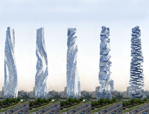 The Dynamic Tower will also be the first skyscraper to be built entirely from prefabricated parts that are custom made in a workshop, known as the Fisher Method,