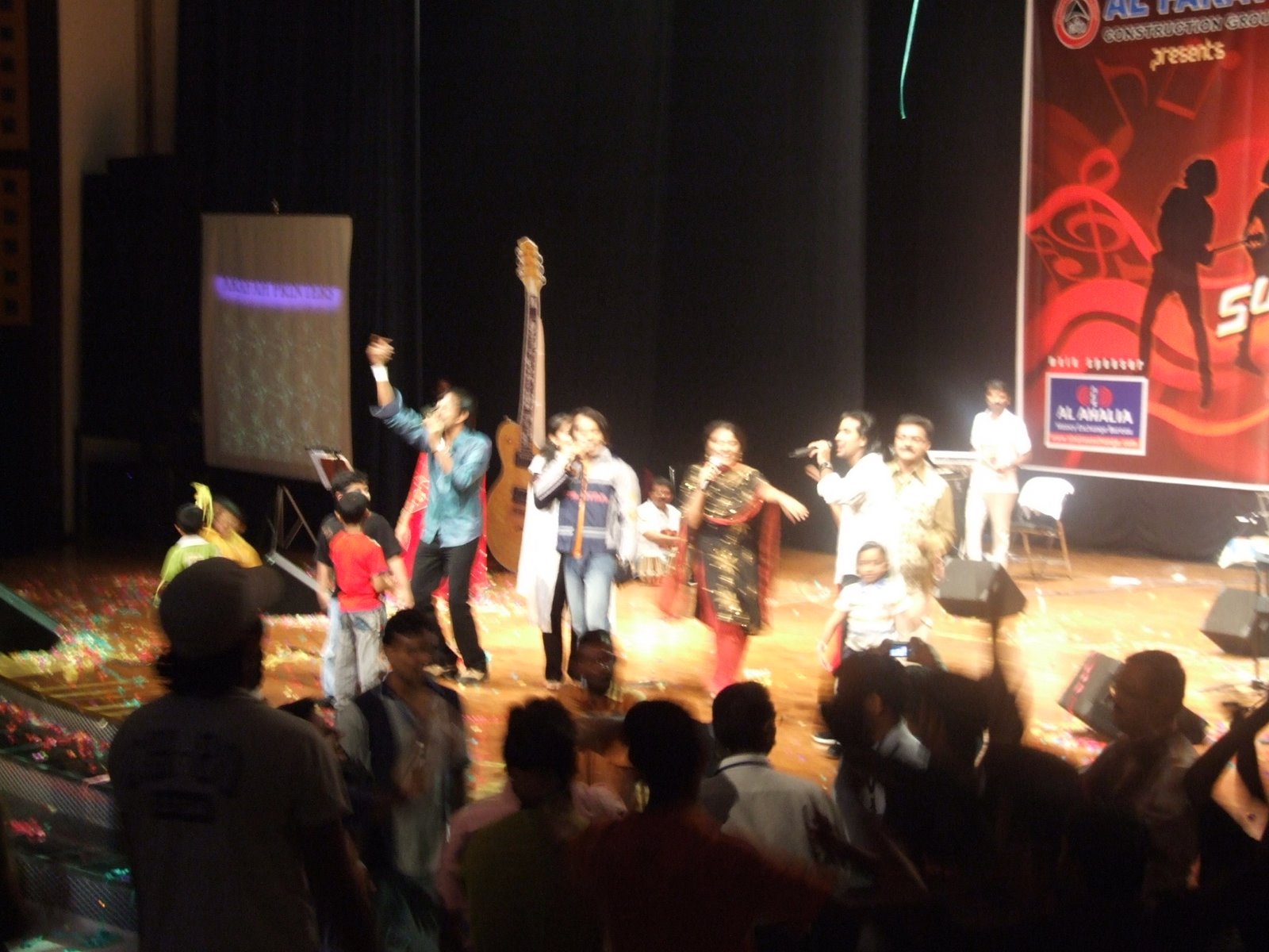 Super Stars rocking for the final time on stage with audience for this memorable evening. I am sure this will be the beginning of a series of successful programme for these young talents and may get to perform many more such packed venues in INDIA, UAE, OMAN, BAHRAIN, QATAR, KUWAIT and other parts of the world.