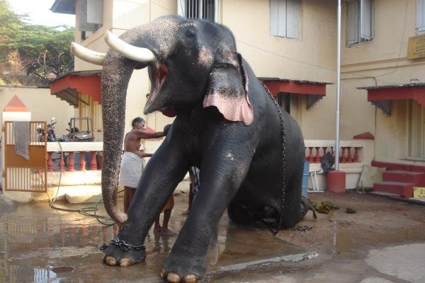 Enjoy the photos of a beautiful temple elephant taking bath at the Shiva Temple Ernakulam before the festival.