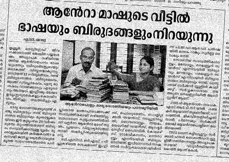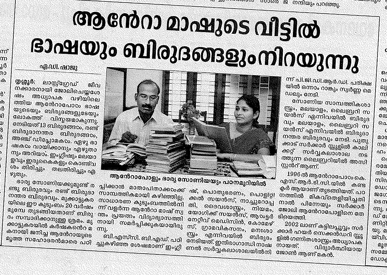 ആന്റോ മാഷുടെ വീട്ടില് ഭാഷയും ബിരുദങ്ങളും നിറയുന്നു.