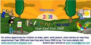 Act now and SHARE your child’s creative talent to the world around. Send their works with the following details to team1dubai@gmail.com before 30th December 2008: