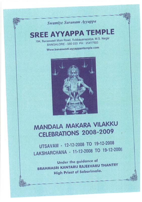 എല്ലാം എല്ലാം അയ്യപ്പന് – മണ്ഡല മകര വിളക്ക് ഉത്സവം – ബാനസവാടി, ബാംഗ്ലൂര് അമ്പലത്തില്