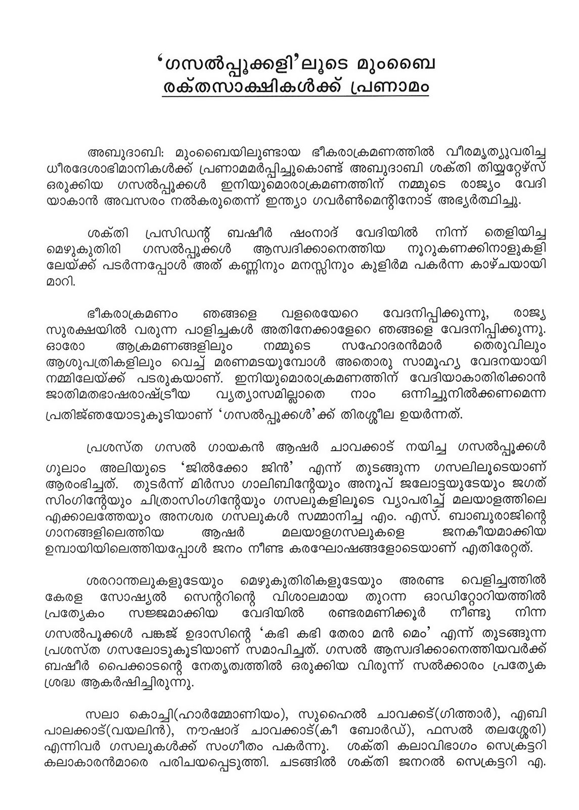 style=”font-size:130%;”>തനിമ: മികച്ച ഗായകനേയും ഗായികയേയും തെരെഞ്ഞടുക്കുന്ന മത്സരം ആരംഭിച്ചു.