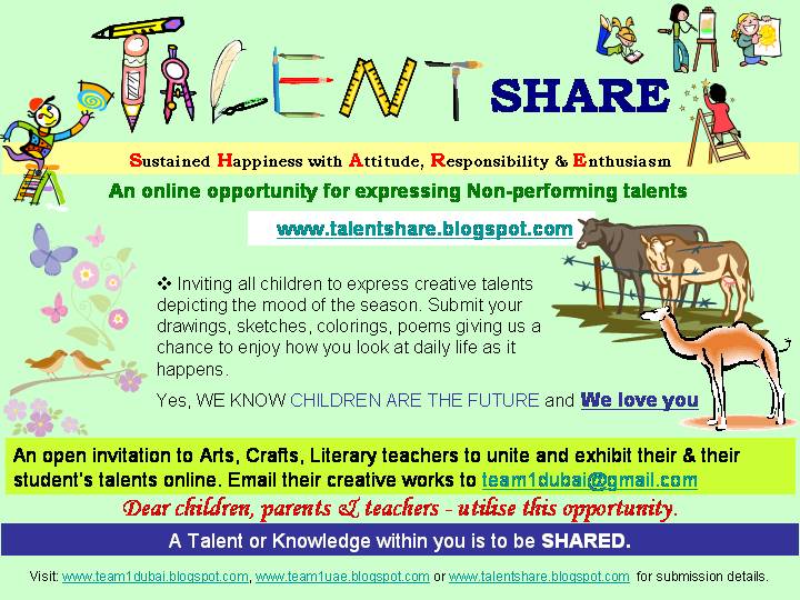 More parties who are interested to support the Talent Share initiatives may write to me at team1dubai@gmail.com.
