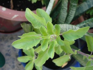 2009. Let it be a productive year. As I wrote in my newsletter it was a foggy end to 2008 in all sense and beginning too (as this photo taken at 1:30 here local time shows). However, the weather cleared very soon, and as usual it was a bright and sunny morning today. Like these blossoming leaves of Ocimum Sanctum spread its aura and beauty (thulasi) let us try to spread our good qualities around with a social conscience for the benefit of the society.