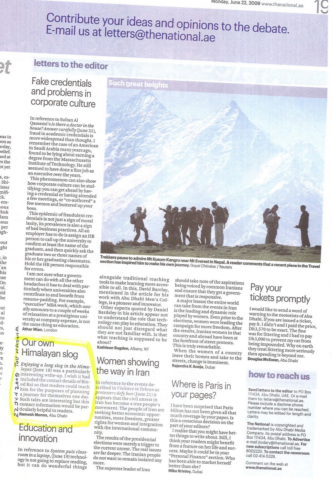 My Letters – THE NATIONAL – Our Own Himalayan Slog