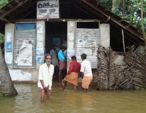 മഴവെള്ളം കയറിയ പുല്ലൂര് പുളിഞ്ചോട് ഷാപ്പില് ഞായറാഴ്ച കള്ളുകുടിക്കാനെത്തിയവര്. ഉച്ചക്ക് 12 ആയപ്പോഴേക്കും ഷാപ്പിലെ കള്ളുമുഴുവന് തീര്ന്നിരുന്നു.