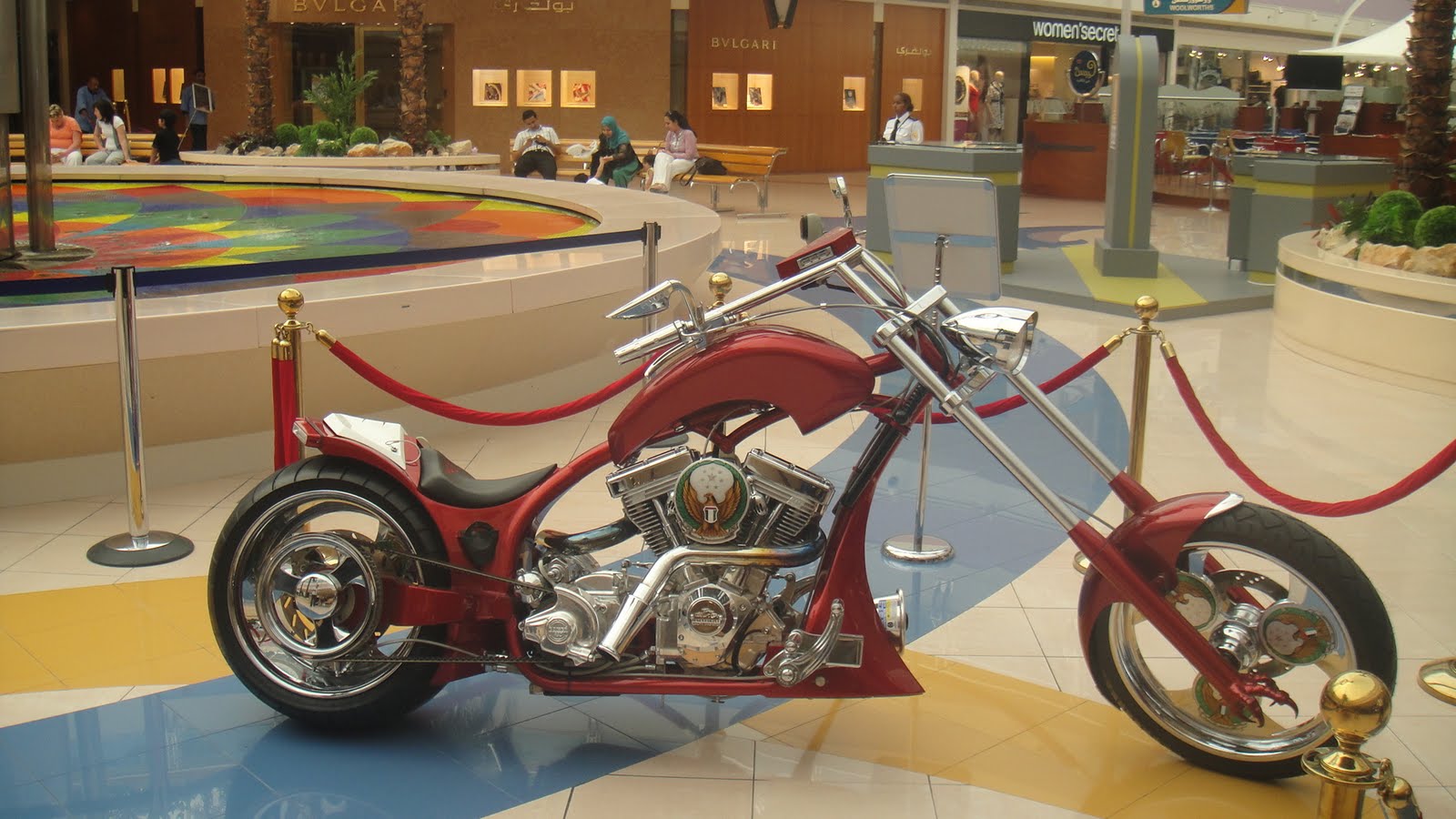 A motorcycle specially made for Abu Dhabi Police on display at one of the malls.