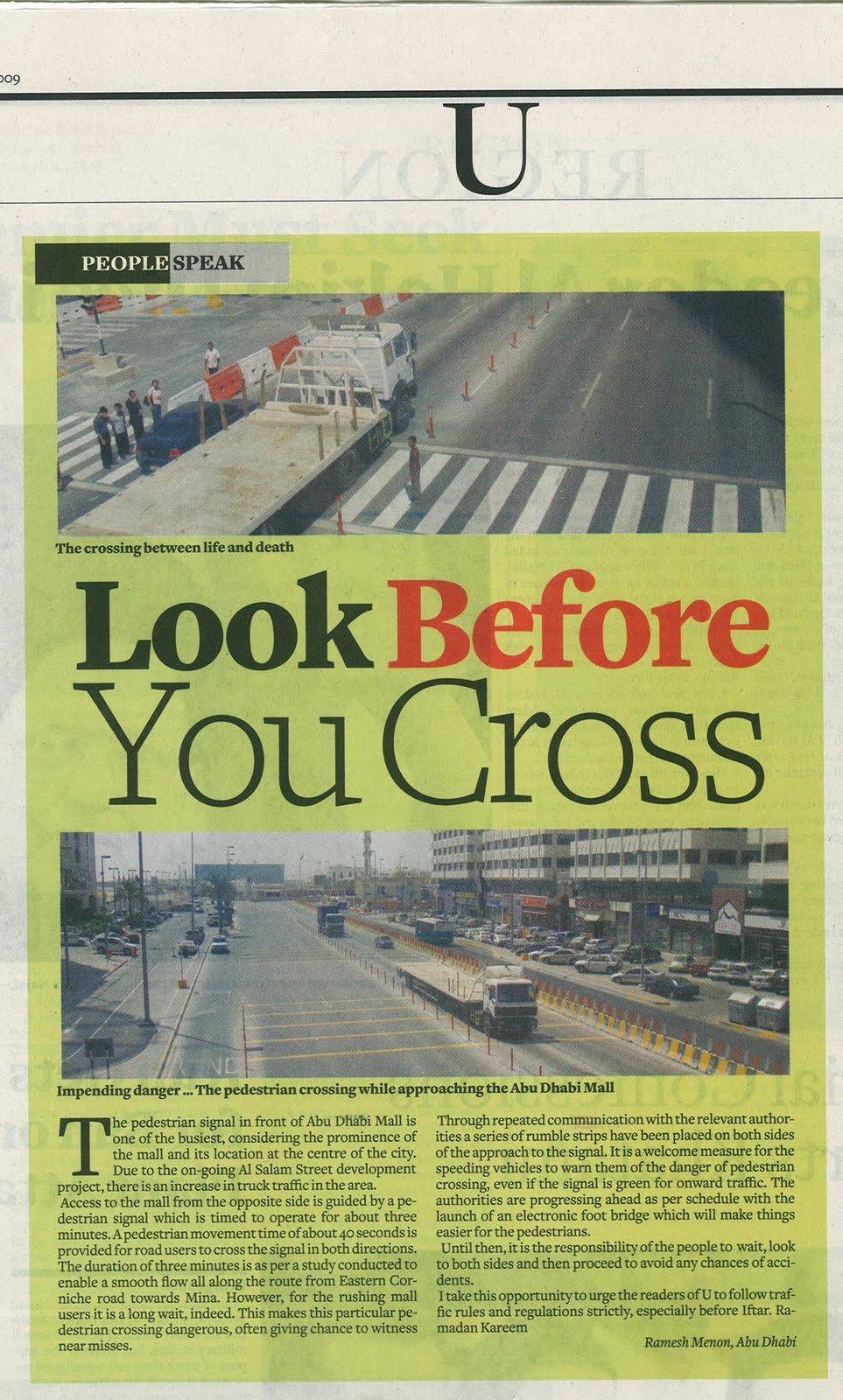 My Letters – Khaleej Times – Look Before You Cross