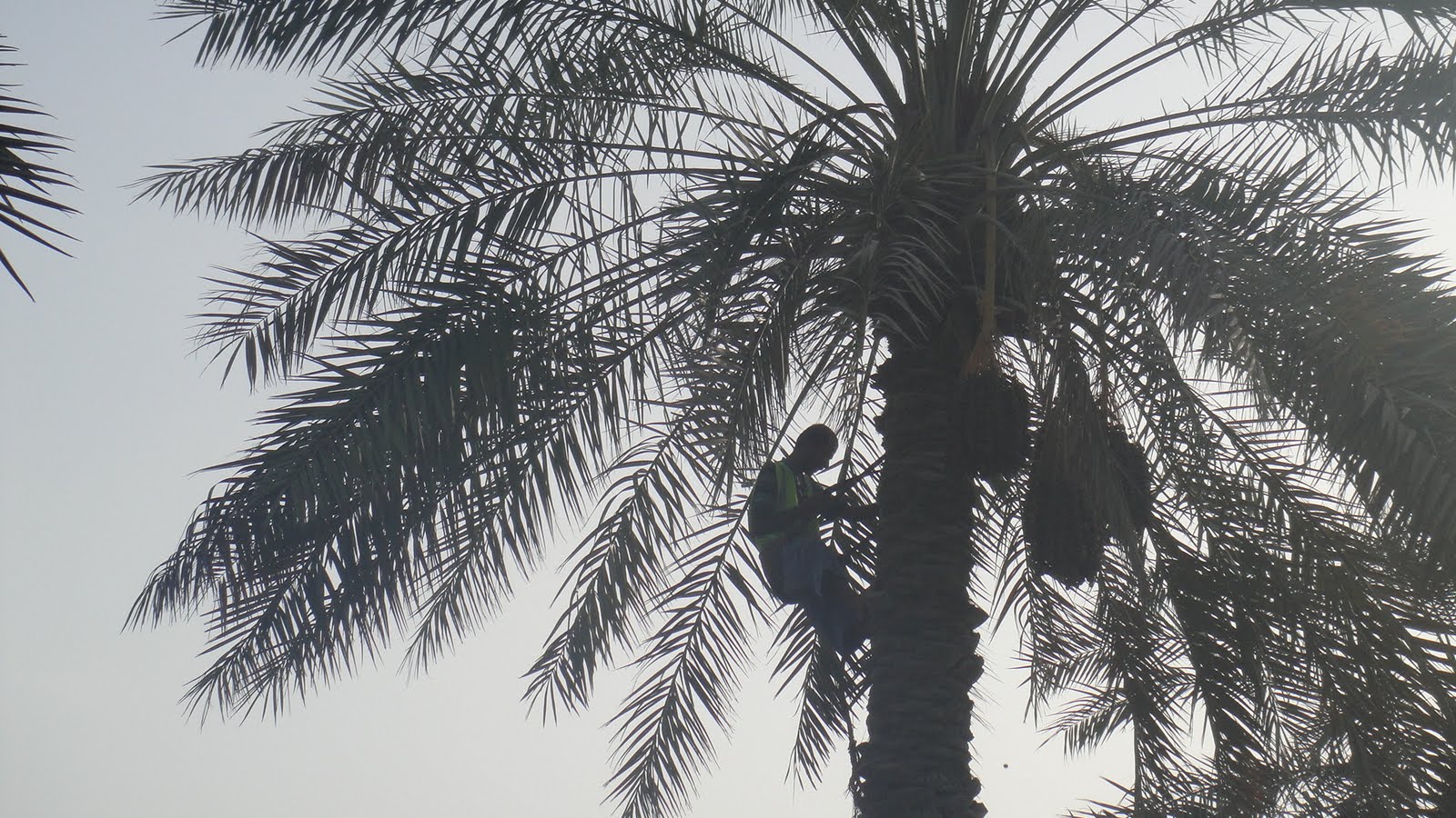 A municipality worker from Abu Dhabi Municipality harvesting the dates