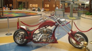 അബുദാബി പോലീസിനു വേണ്ടി പ്രത്യേകം നിര്മ്മിച്ചിരിക്കുന്ന ഒരു മോട്ടോര് സൈക്കിള്. ഒരു റമദാന് പവലിയനില് നിന്നുള്ള കാഴ്ച.