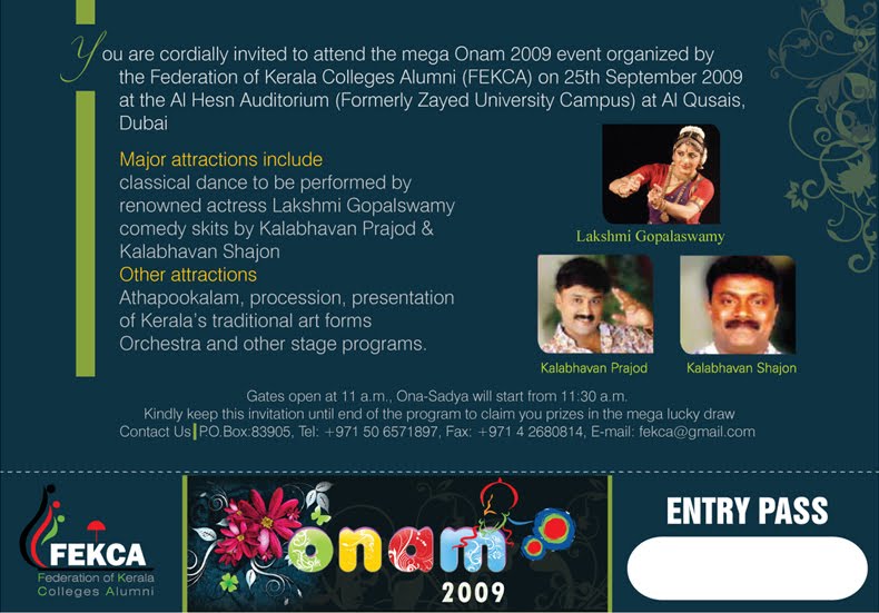 FEKCA Onam 2009 – Kerala Colleges Alumni Onam Celebration details