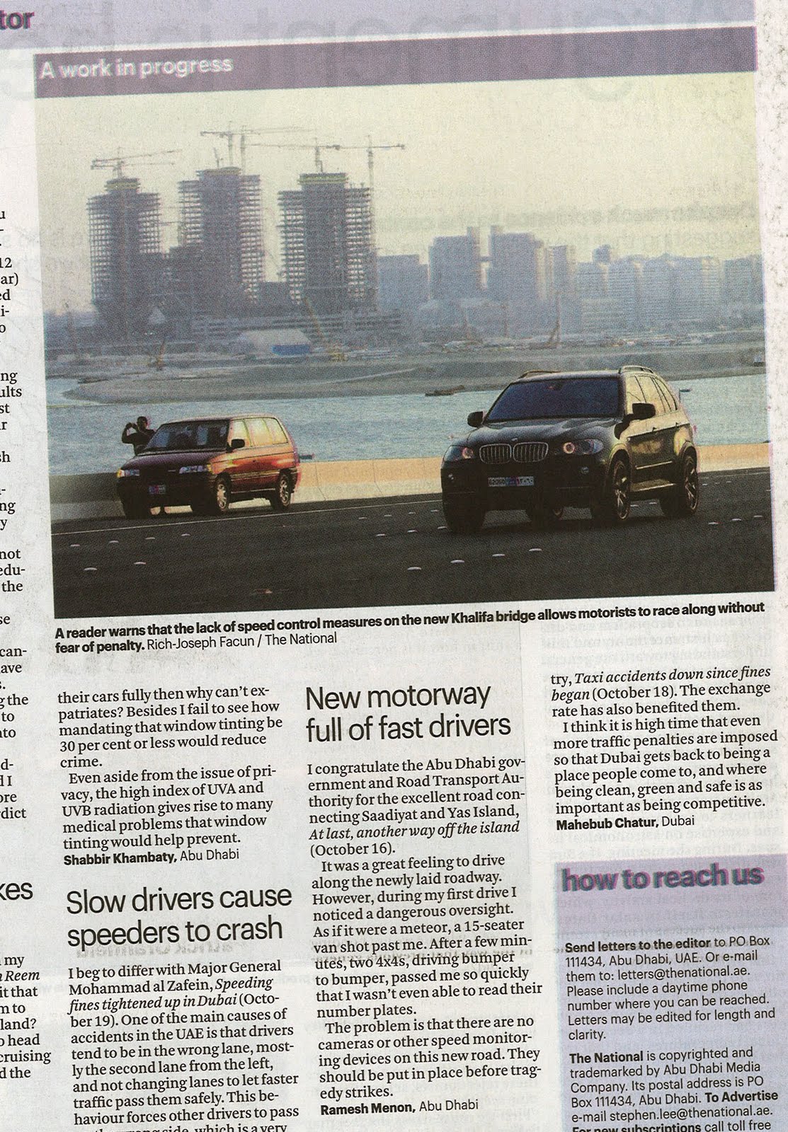 My Letters – THE NATIONAL – New Motorway full of fast drivers