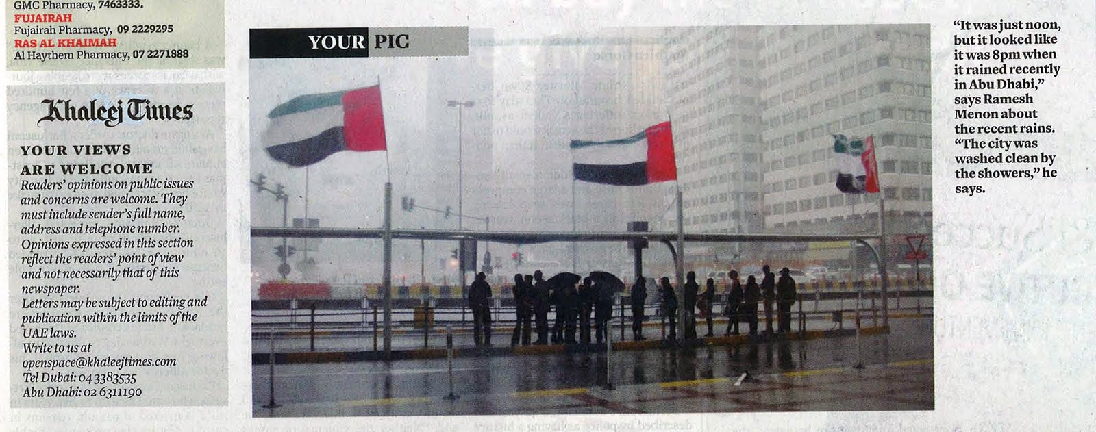 My Letters – Khaleej Times – Raining in Abu Dhabi
