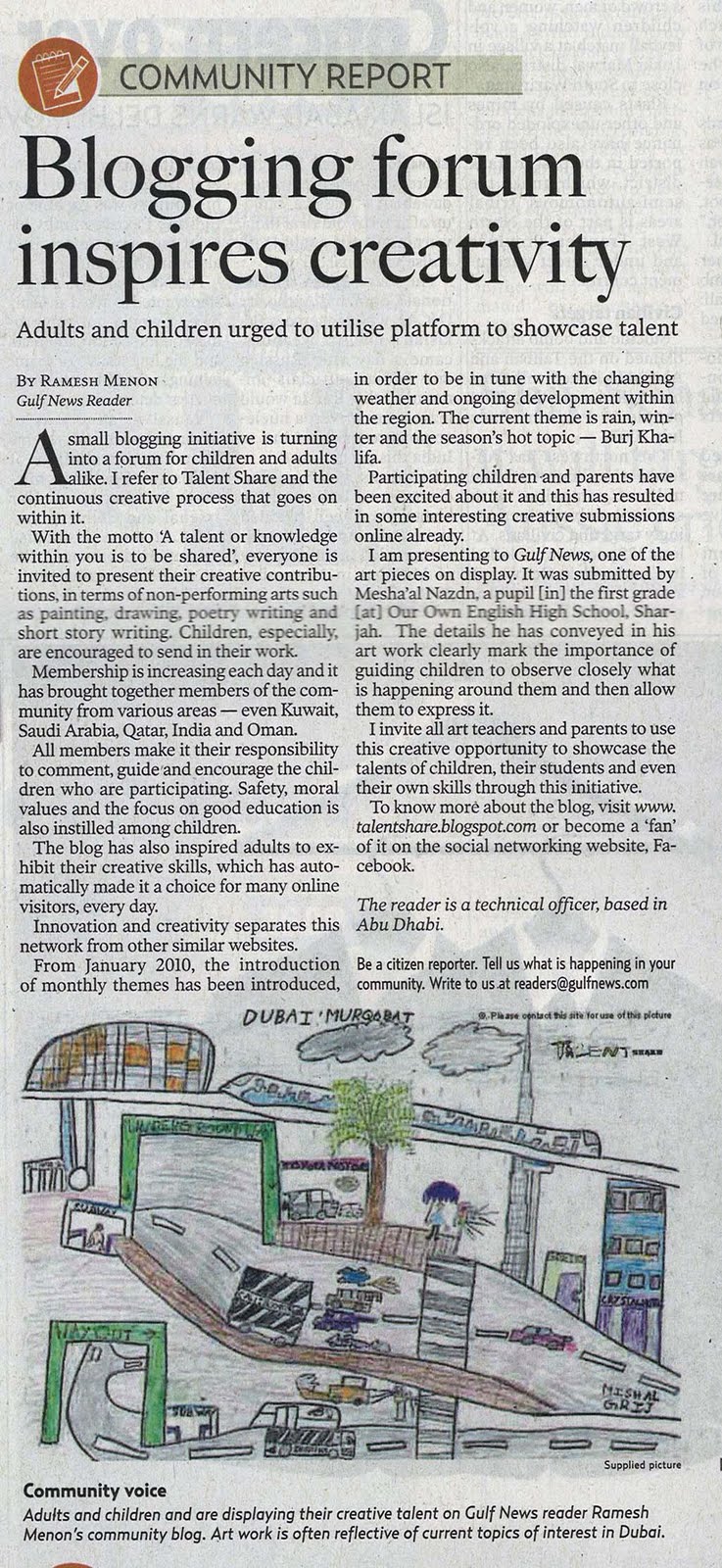 My Letters – GULF NEWS – 14 Jan 2010 – Blogging forum inspires creativity