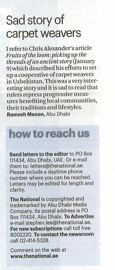 My Letters – THE NATIONAL – Dt 11 Jan 2010 – Sad story of carpet weavers