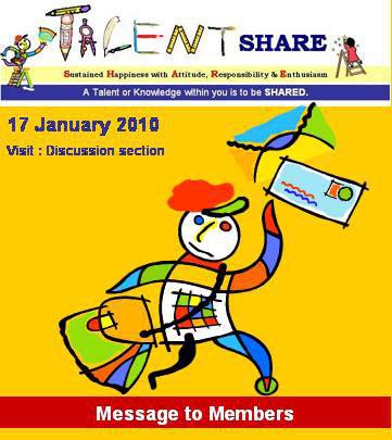 Thanking all of you in advance for joining Talent Share as a Fan. Please do invite any child or creative person, who you feel will benefit from this initiative.