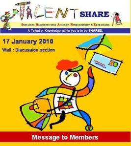 I am sure you are all noticing that Talent Share blog and Fan page is passing through a period of several innovative changes. As part of a dedicated effort to make it as a “must place of visit online”, I have now introduced the following interesting topics in the Discussion section here: