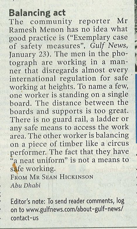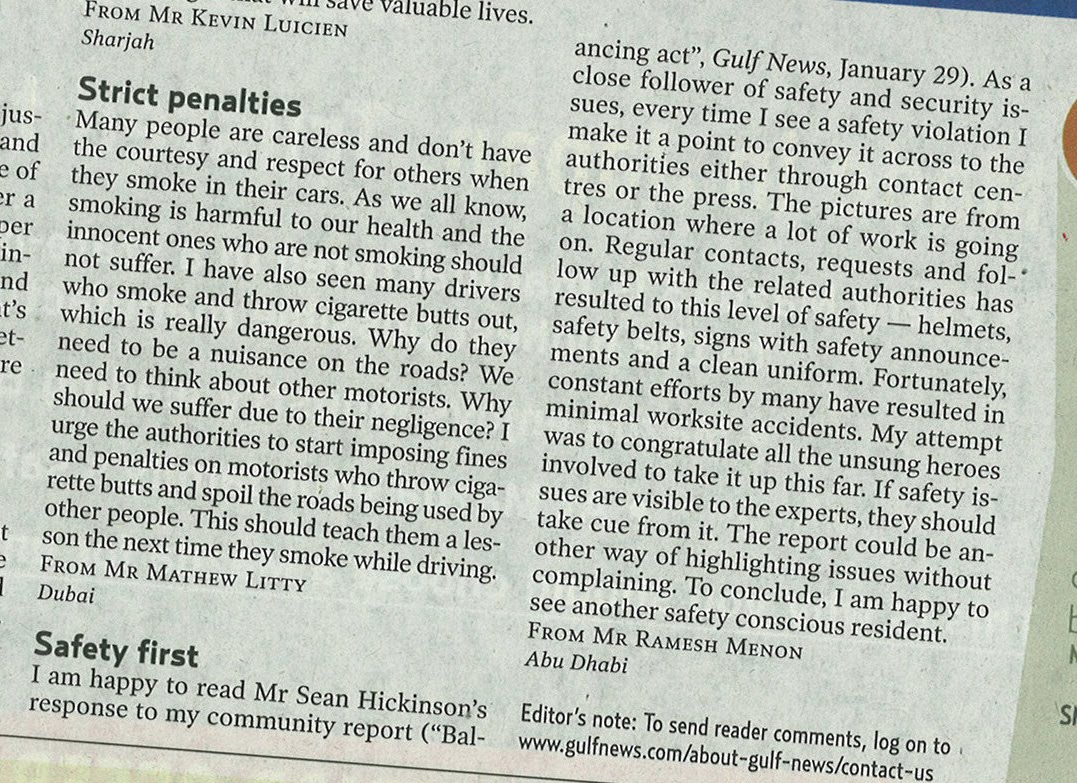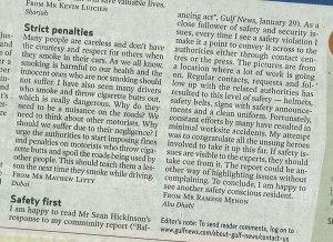 My Letters – GULF NEWS – Safety First – Dt 03 Feb 2010
