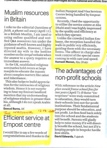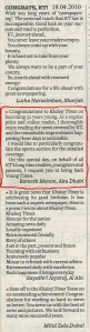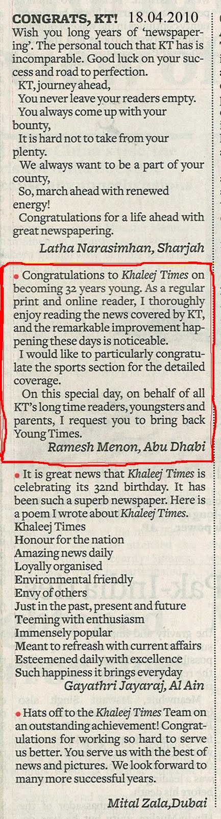 My Letters – Khaleej Times – Dt. 18.04.2010 – Congratulations Khaleej Times
