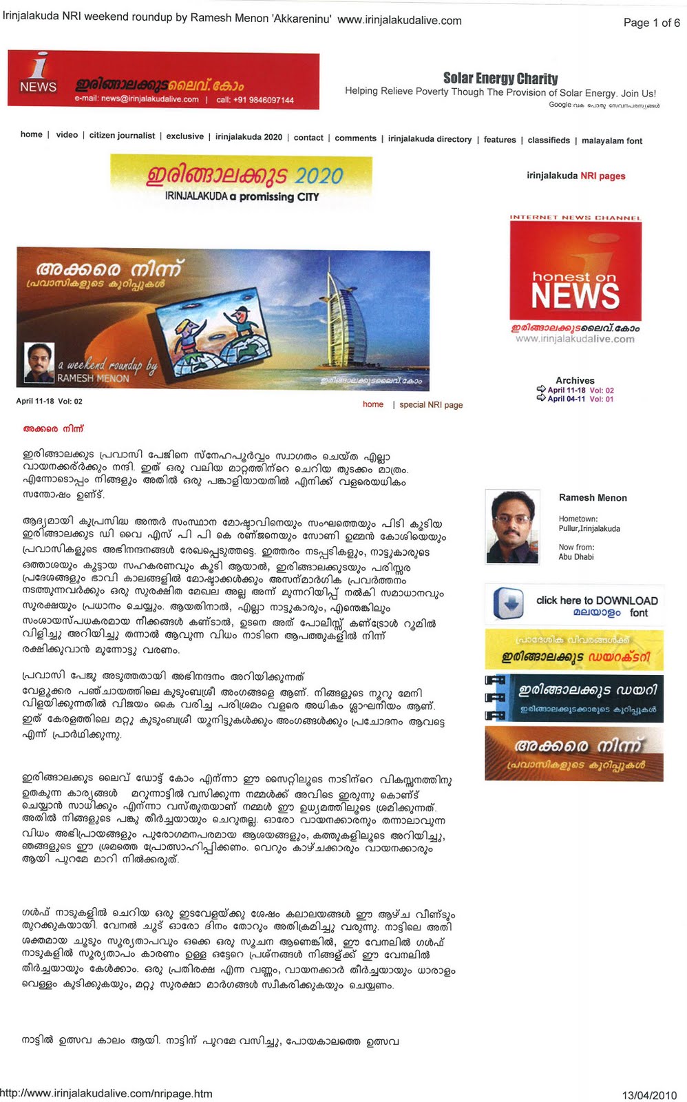 My Opinion – Irinjalakuda Live dot com – Dt. 06.04.2010 – Akkare Ninnu – vol.1