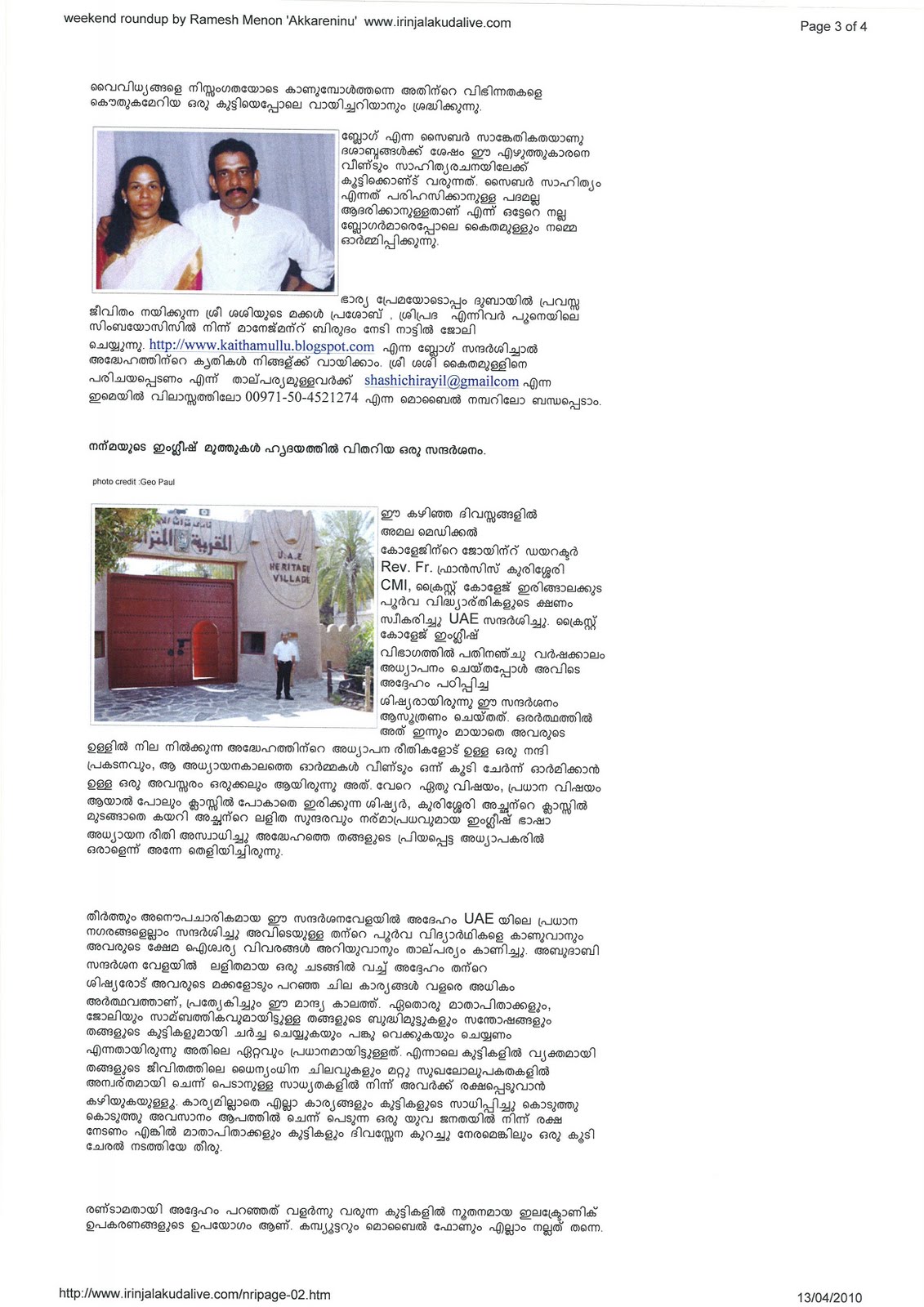 My Creatives Malayala Manorama – Dt. 08.04.2010 – Modi Chetta Marakkalle (in Malayalam)