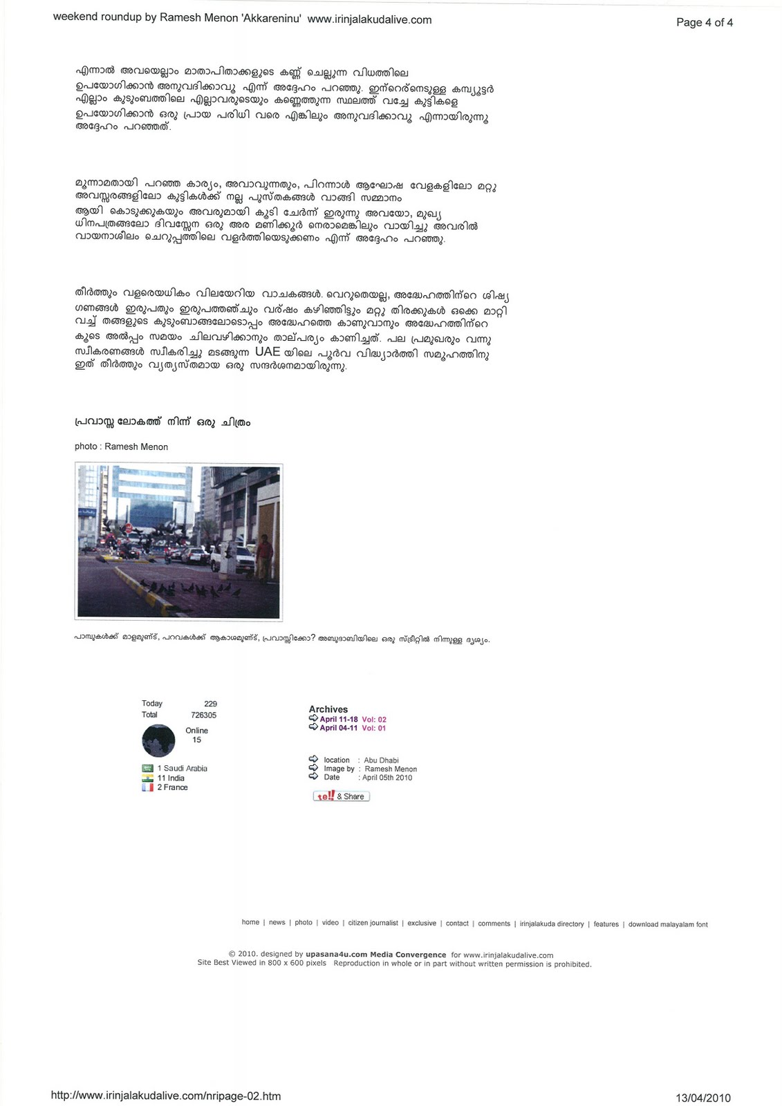 My Opinion – Irinjalakuda Live dot com – Dt. 11.04.2010 – Akkare Ninnu – vol.2
