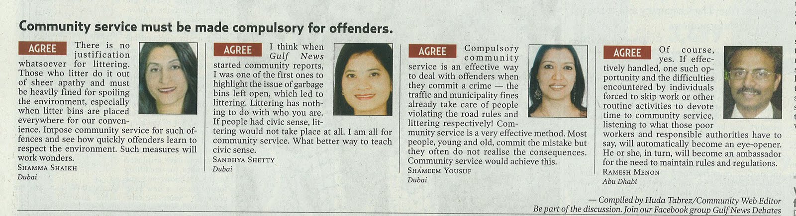 My Opinion – Gulf News – Dt. 16.04.2010 – Focus : Civic Sense