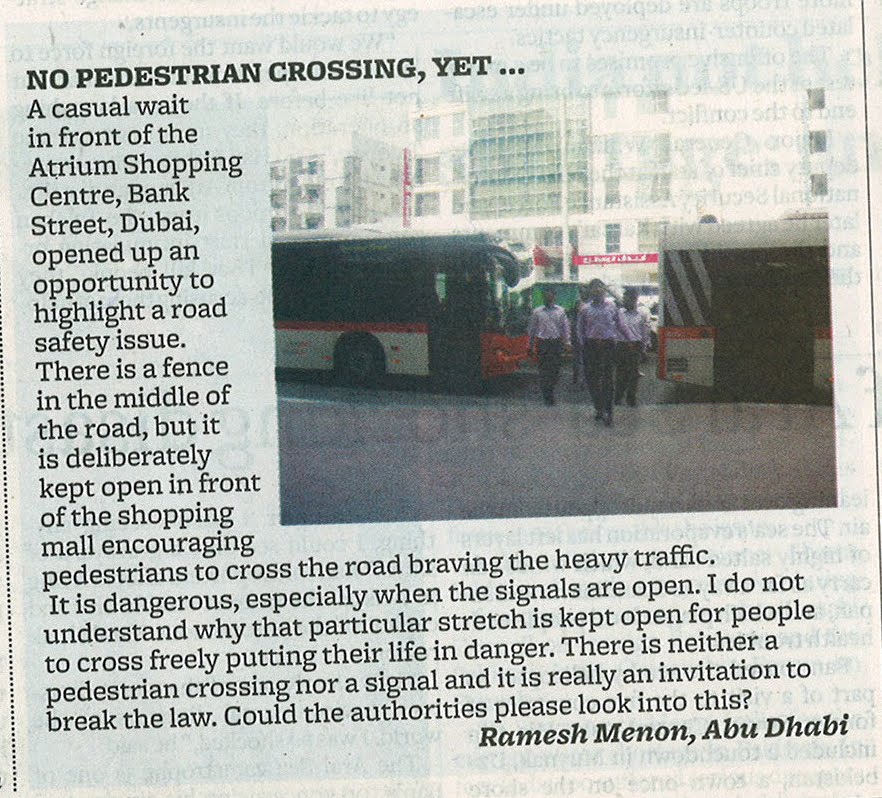 My Letters – Khaleej Times – Dt 05.04.2010 – No Pedestrian Crossing, yet