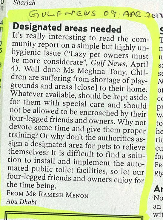 My Letters – Gulf News – Dt. 04.04.2010 – Lazy pet owners must be more considerate