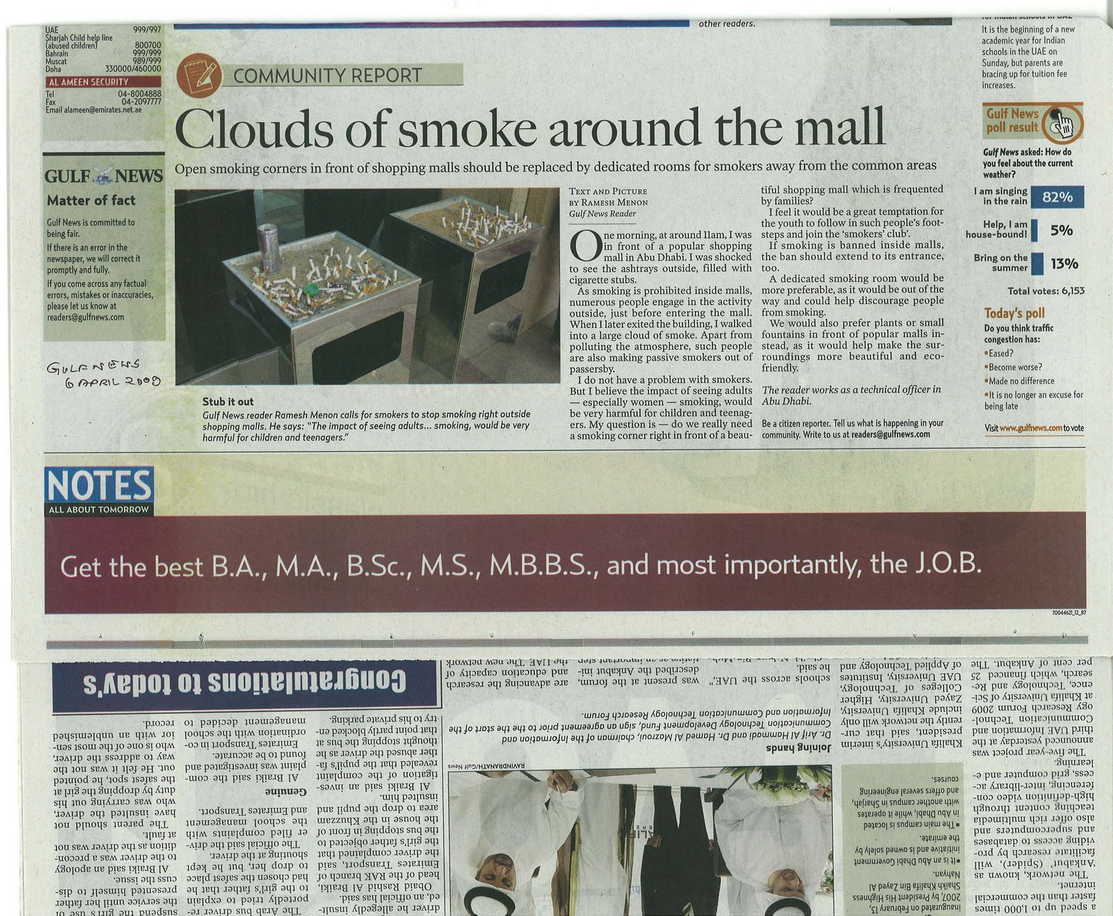 My Letters – Gulf News – Dt. 07.04.2010 – Move smokers away from UAE mall entrances