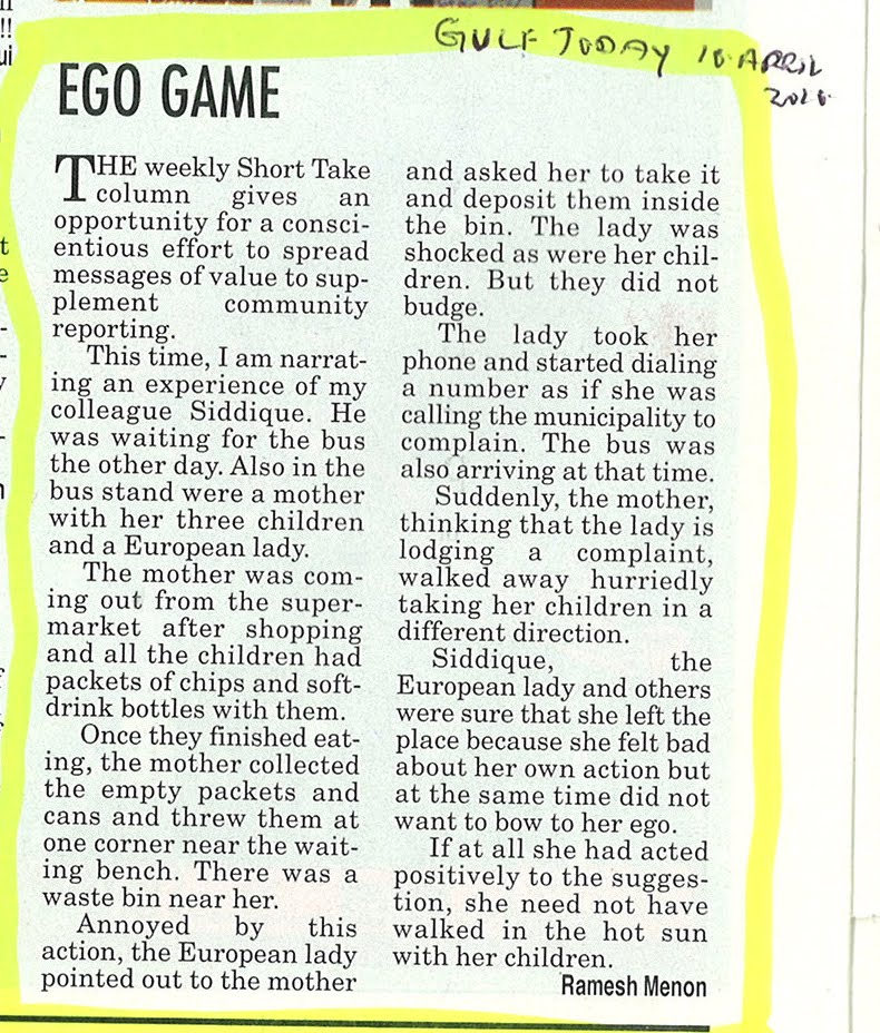 My Letters – Gulf Today – 10.04.2010 – Ego game
