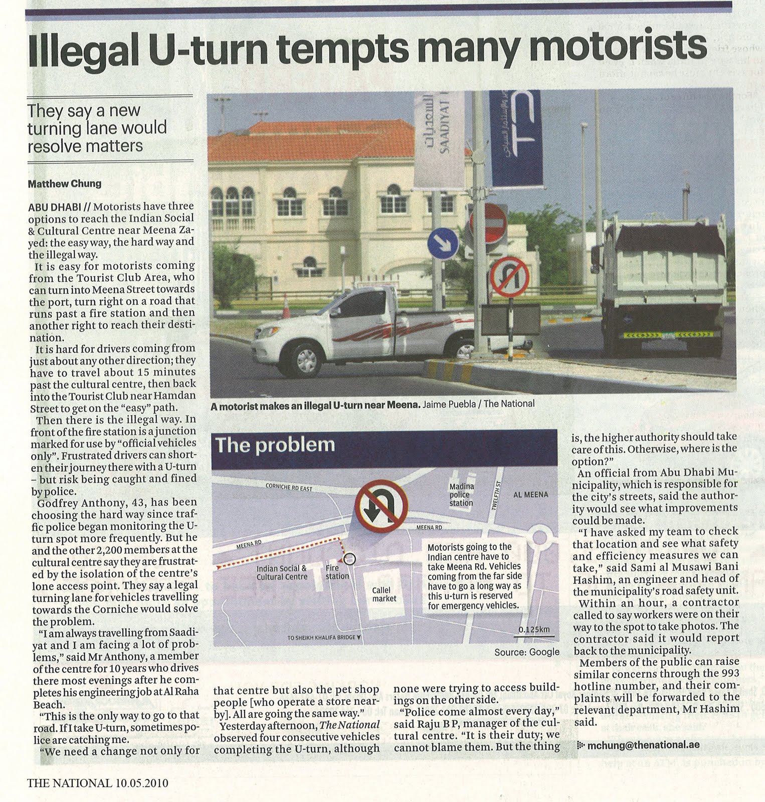 My Opinion – THE NATIONAL – Dt 10.05.2010 – THE NATIONAL – Illegal U turn tempts many motorists