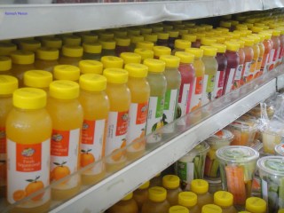 An attractive display of fresh fruit juice items produced by Barakat Quality Plus.