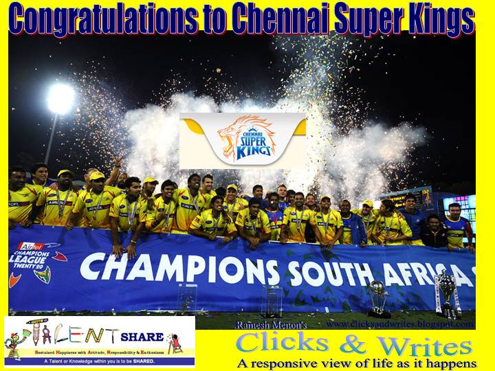 As expected before the first ball of the finals played, Chennai Super Kings have won the finals of the CLT20 Cup. Watching the match and the entire series gave several interesting management perspectives. One man cannot win continuously matches for his team, especially highly competitive matches like this. This was proved by the performance of Davey Jacobs. He guillotined his and his teams chances the moment he played an over enthusiastic shot of R Ashwin’s first ball. It proved several things for the bowler and all of us. First of all, the value of following the basics, which he did, by keeping the ball straight to the stumps. Secondly and most importantly, keeping a calm and composed self on the field, even at times of victory or defeat. I wish, video of his bowling efforts at this series to be showed as an example to our other bowlers, who swear, curse and do all sorts emotional tantrums, while they lose focus and objectives. Davey also erred in brining his new ball bowler Thoron after 5 overs, instead of bringing him fresh, which may have caused the bowlers confidence. Off color M Boucher, supplemented with luck favoring him on the d-day enabled M Vijay to walk away with the Golden Bat award.