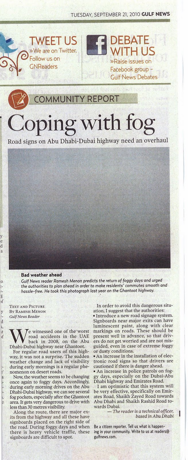Community report – GULF NEWS – Dt. 21.09.2010 – Coping with fog