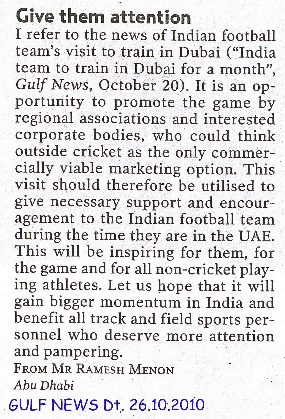 My letters – GULF NEWS – Dt. 26.10.2010 – Give them attention