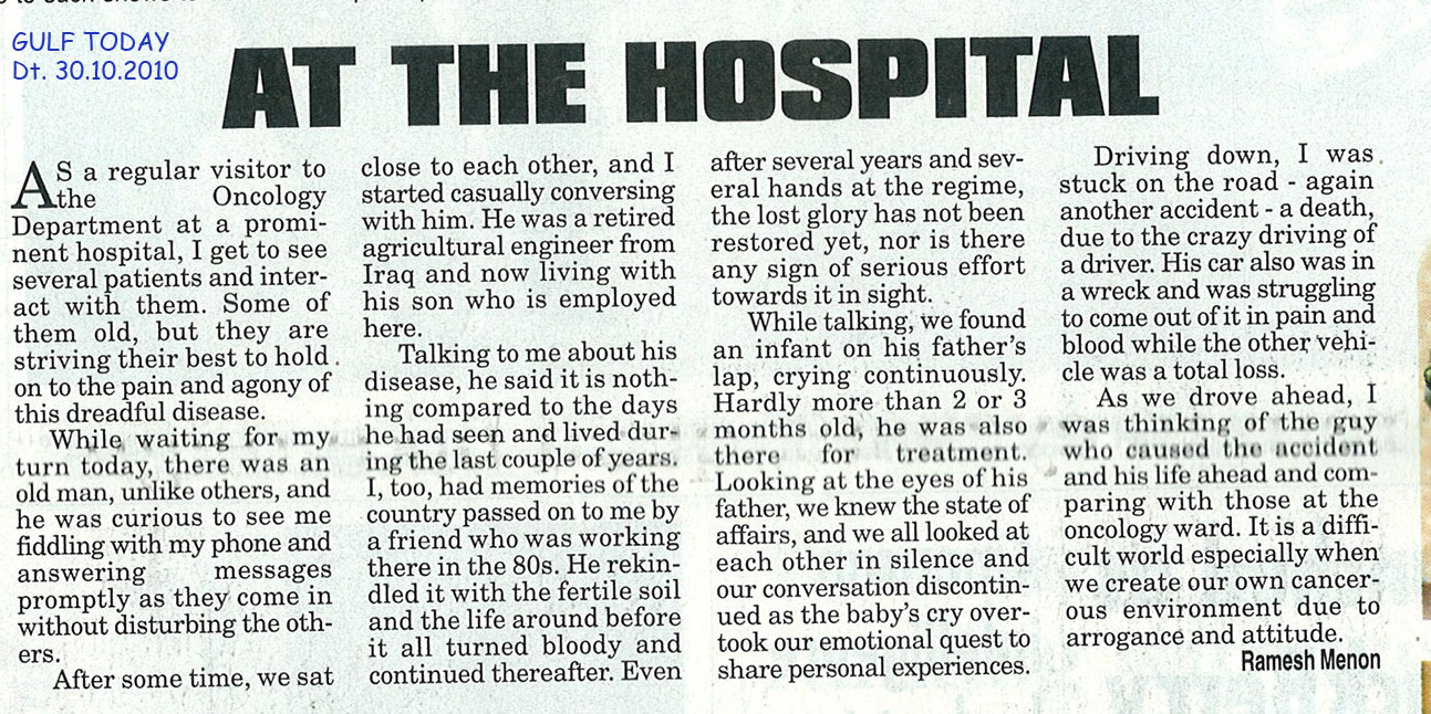 Short Take – GULF TODAY – Dt. 30.10.2010 – At the hospital