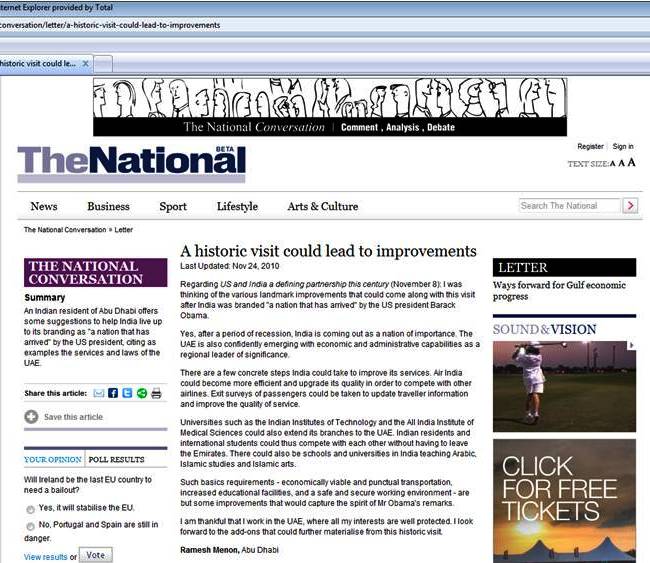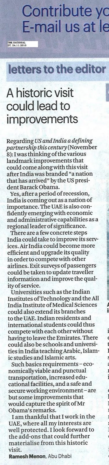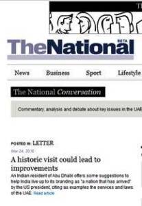 A historic visit could lead to improvements – My Letters – THE NATIONAL – Dt. 24.11.2010
