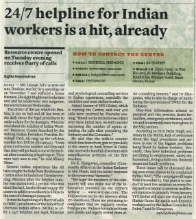It was the beginning of a flurry of calls to IWRC, an initiative of the Ministry of Overseas Indian Affairs (MOIA) to offer a 24/7 helpline and legal, financial and psychological counselling services to Indian expatriates, especially the unskilled and semi-skilled workers.